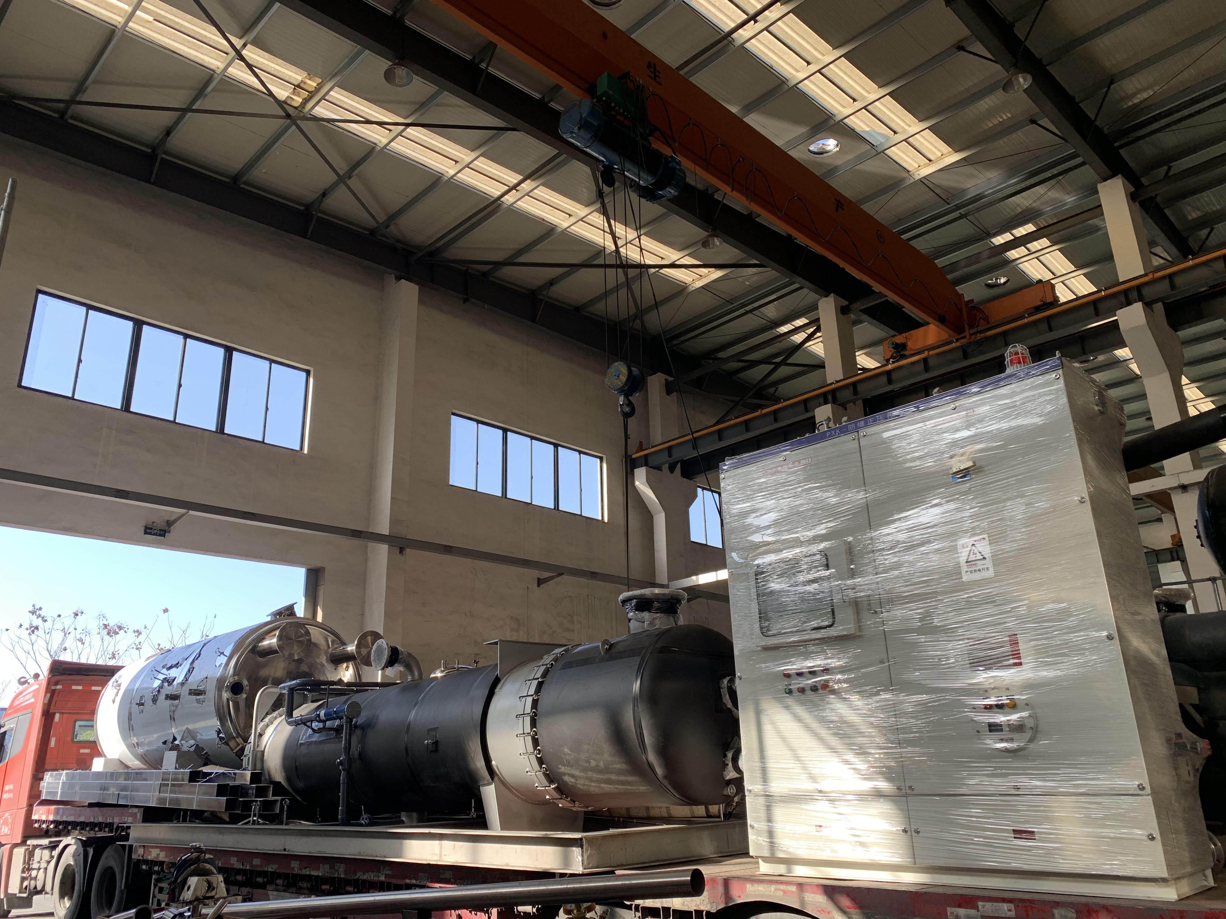 自敏杰成功研發(fā)SDR高效節(jié)能濃縮機以來,已被廣泛受到制藥、食品、化工、生物、環(huán)保等行業(yè)的關(guān)注,解決了目前傳統(tǒng)單效蒸發(fā)器、雙效蒸發(fā)器等蒸發(fā)設(shè)備蒸汽耗量大,能耗高等問題,大大降低了用戶生產(chǎn)過程中的運行成本。據(jù)統(tǒng)計,自更換敏杰的高效節(jié)能濃縮設(shè)備后,某企業(yè)每年可節(jié)約600多萬的成本費用。以下為陸續(xù)發(fā)往不同客戶的設(shè)備照片